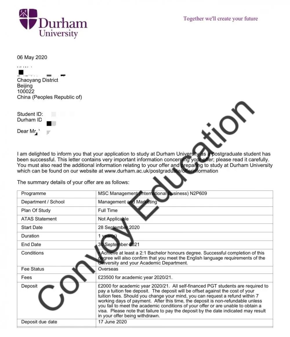 【护航案例】杜伦大学最新捷报:论成绩不足时有哪些加分项发表时间:2020-11-02 12:54来源:原创 Y同学刚刚传来捷报,已获得大三最终成绩,正式录取杜伦大学管理学研究生专业。