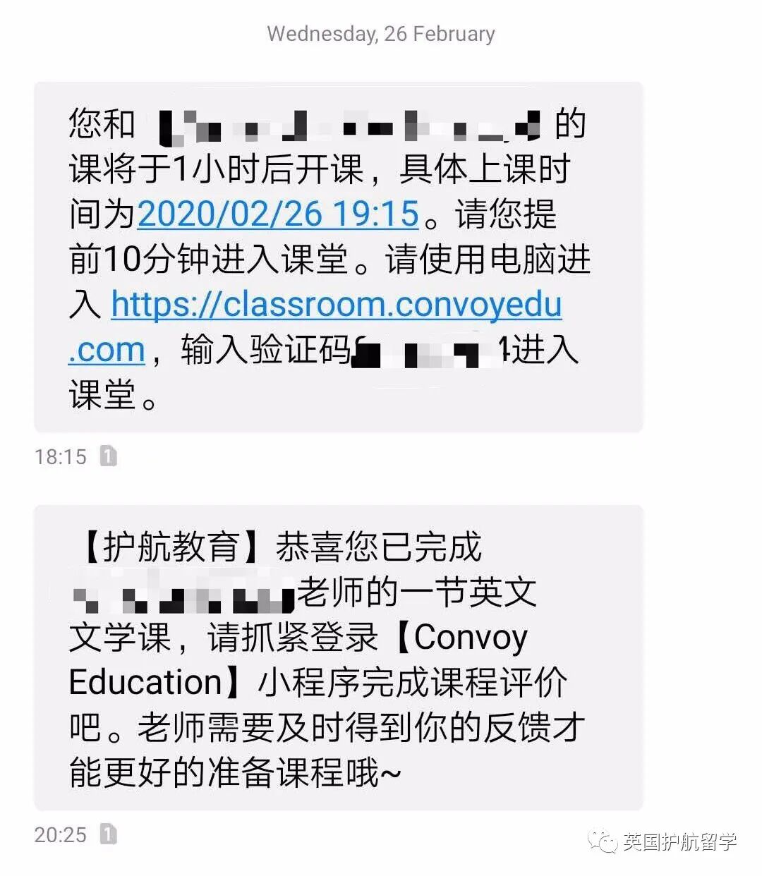 而护航课堂的三方同步管理模式可以很好地解决这一痛点。身为“班主任”,我们会全程跟进同学们的补习进度,与导师和家长无障碍沟通交流,并通过我们的系统平台统一管理,例如,我们在课前、课后都会通过短信发送提示信息,让同学们可以安心高效地上课,毫无后顾之忧。