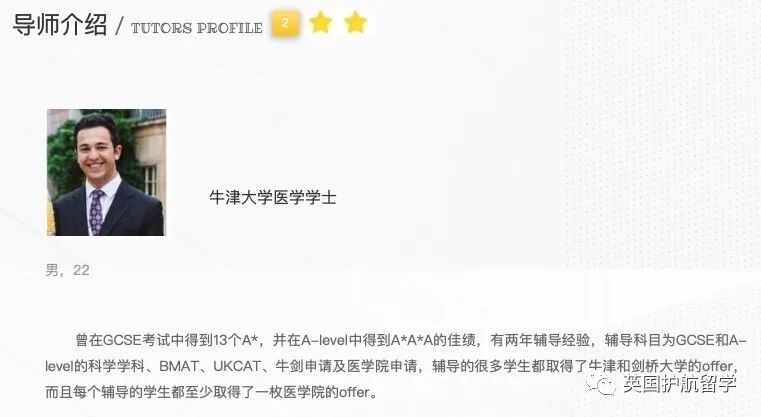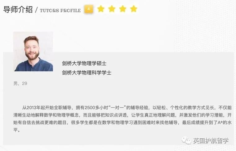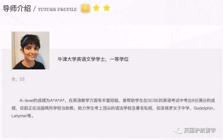 部分导师本身就持有教师资格证或在学校任职,如下面的这两位导师,曾在著名公学任教,熟知牛剑及顶尖私校的录取要求,很适合想要冲刺名校的学生: