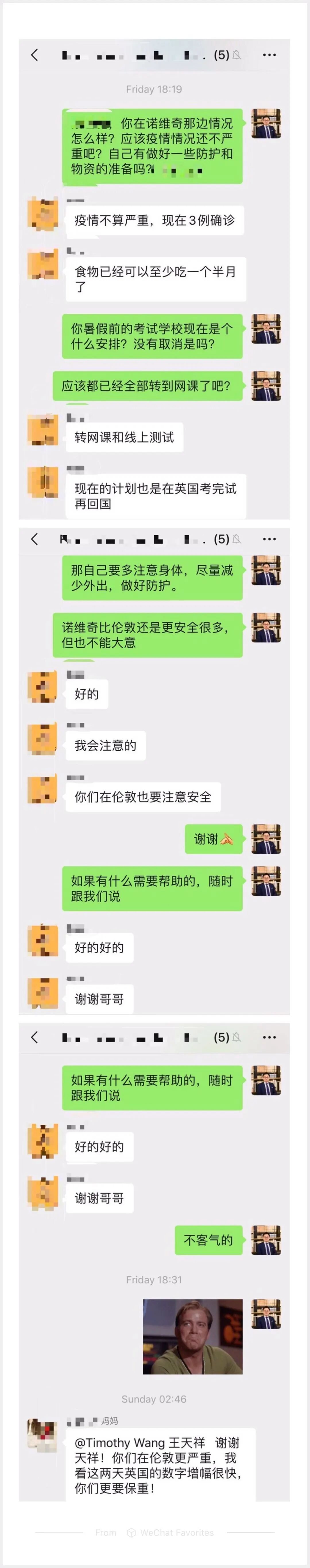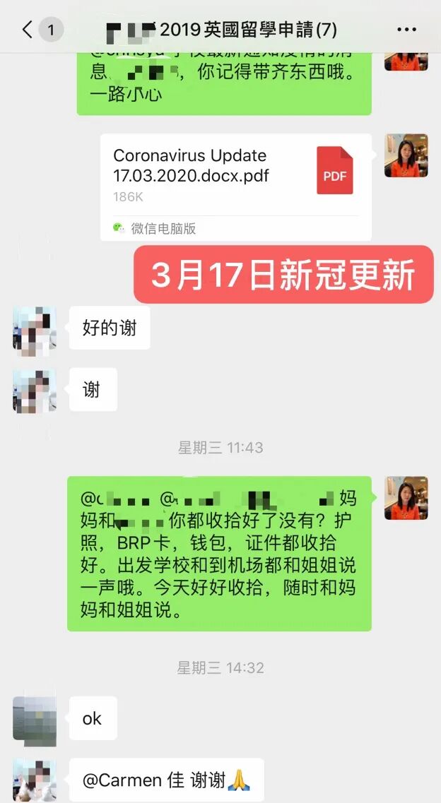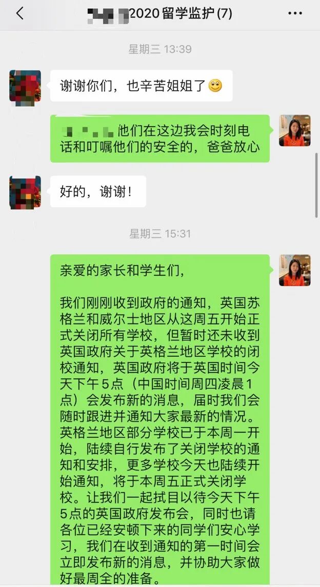 01 护航监护工作之协助归国 ▲ 点击图片查看细节图 ▲ 点击图片查看细节图 ▲ 点击图片查看细节图 02 护航监护工作之协助留守 03 致敬逆行者 上周五,首相宣布关闭学校的同时也提到,在抗疫期间,社会关键职位工作人员的孩子若无人看顾,将由一部分学校承担起照看和教育他们的职责。同时,与护航教育合作的部分英国顶级私校也主动宣布,将协助政府承担起这个社会责任。 为此,我们从国内采购了上千口罩、一次性手套、护目镜等捐献给学校,帮助学校和这些奋战在疫情第一线人员的子女。目前,这第一批物资已在运往英国的途中,届时将会直接送往学校,等物资送达,再将具体情况更新给大家。 与此同时,也有学生家长联系我们,希望我们帮忙,点对点地捐赠口罩和防护服给伦敦当地的医院。目前我们正在积极联络中,会与大家更新后续的情况。如有愿意一起加入医疗物资捐赠的家长,您可以通过文章底部的联系方式,随时与我们取得联系,非常感谢大家的帮助! 没有一个冬天不可逾越,也没有一个春天不会到来。让我们怀揣希望,努力做好自己力所能及的事。借我们的学生家长在群里的话说,愿我们的祖国和世界各地的疫情早日结束,恢复正常的生活。 |